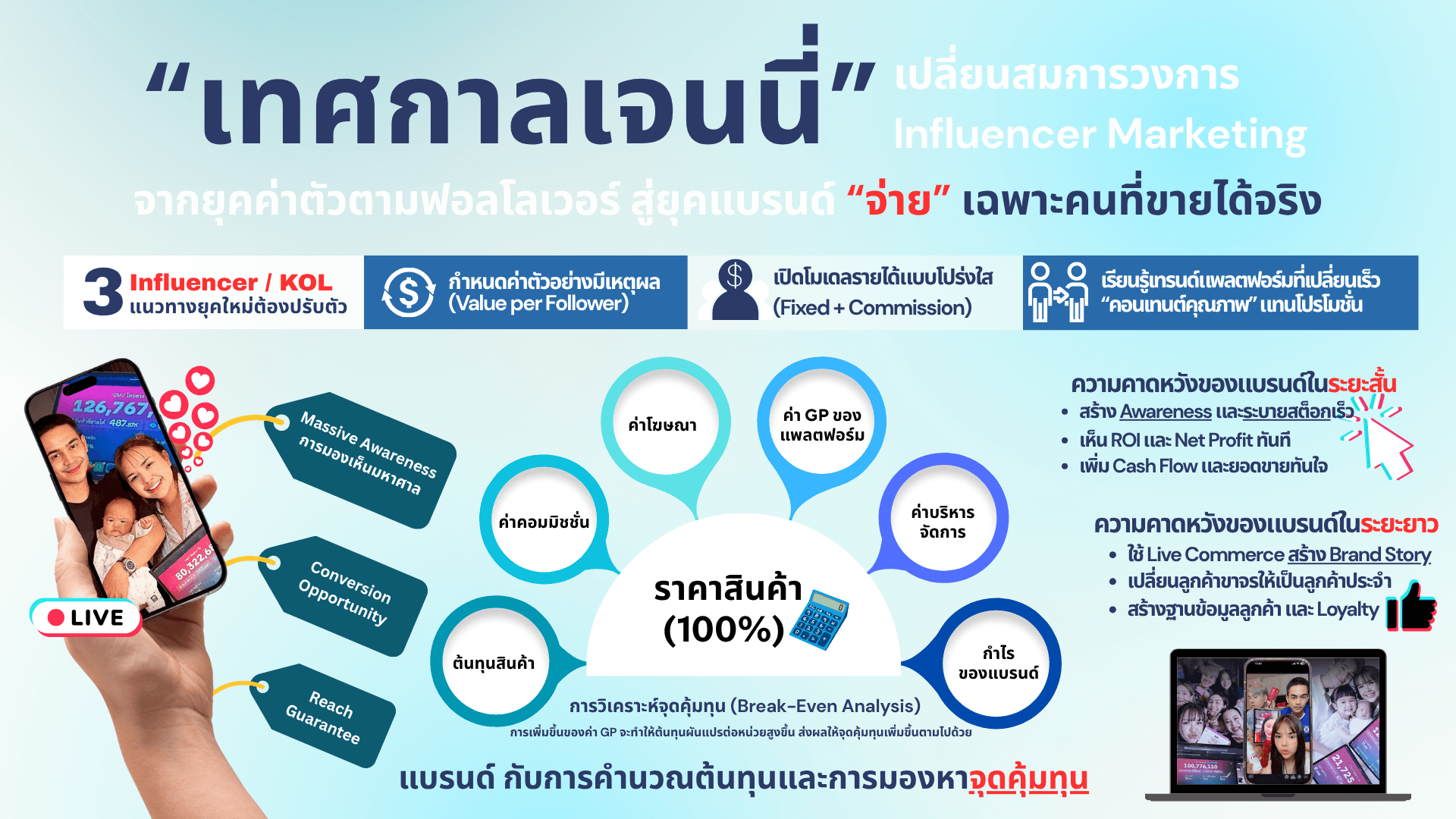 The phenomenon of “Jenny – Daimod Thasodchuen” and her record-breaking live commerce sessions — generating sales in the hundreds of millions of baht — has become a masterclass that redefined Thailand’s Live Commerce and KOL landscape.It’s not just about sales; it’s about setting a new benchmark for how influencer performance and pricing are evaluated.